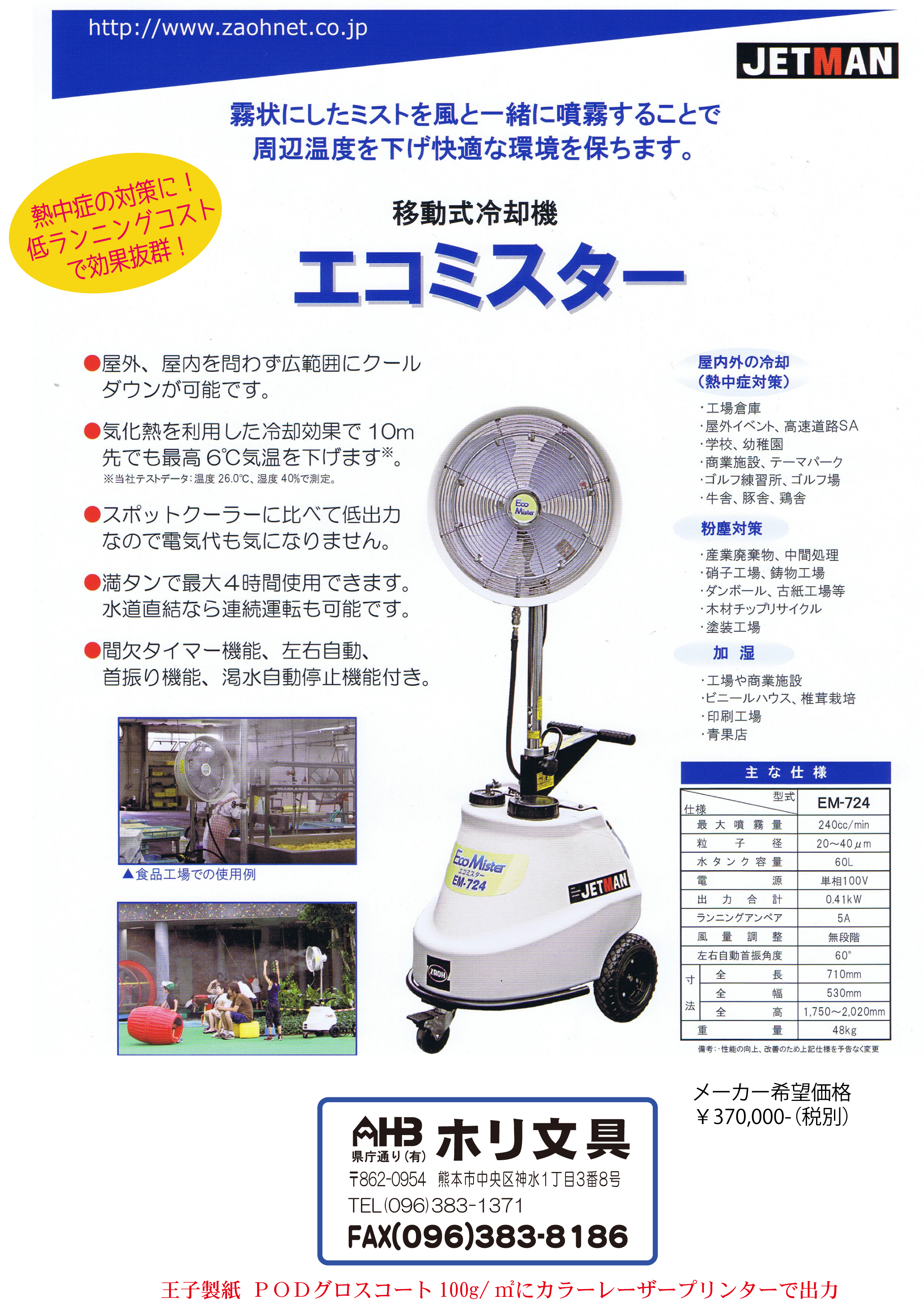 低電力でミストを強力にふきだして、体感温度を下げてくれます! 幼稚園、保育園、お祭り、学校、屋外販売所、イベント、etc・・・ 今年の猛暑にぜひご検討下さい!